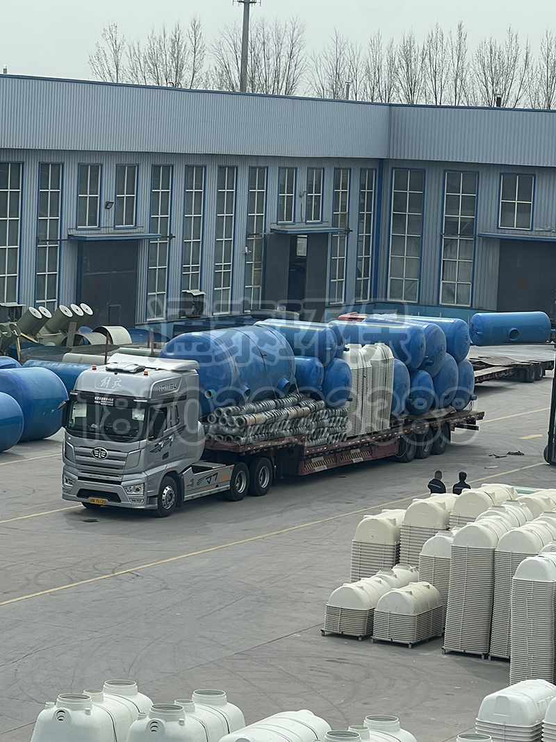 第三階段的產品為波紋玻璃鋼化糞池。這種兩端封頭采用力學性能凹凸狀面設計, 外形為波紋狀臥式圓筒筒體一次成型,獨特的環向密集波紋結構設計,抗壓、抗沖擊強度比方型、圓筒型、球面圓拱型等強度增強數倍,不需要其他任何加固措施即可滿足不同情況下使用,是目前綜合性能國際技術的產品。