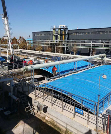用于污水池和氧化溝的密封,防止臭氣散發。在蓋板上設排氣口,將臭氣用管道引出至除臭設備。