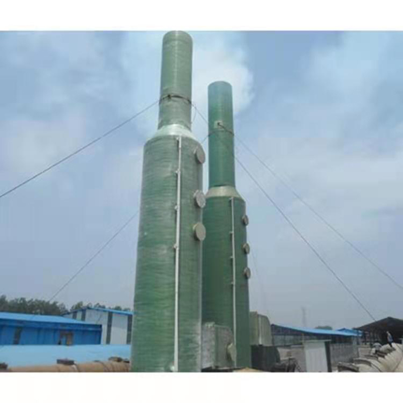 一、玻璃鋼脫硫塔設備工流程:首先,玻璃鋼脫硫塔熱煙氣進入預洗滌塔,與飽和硫酸銨溶液接觸,煙氣在此過程中被冷卻,同時,由于飽和硫酸銨溶液中水的蒸發而析出硫酸銨晶體。已被冷卻的煙氣通過除霧器進入SO2吸收塔。在吸收塔中,氨與水混合成氨液。煙氣中的SO2在此被吸收,與氨反應生成硫酸銨。后,脫硫后煙氣經120米高的煙囪排入大氣。硫酸銨溶液被送入預洗滌塔循環利用。預洗滌塔中的硫酸銨料漿進入脫水系統。先經水利旋流器脫水,然后經離心機得到硫酸銨濾餅。從旋流器和離心機回收的清液返回預洗滌器,循環利用。硫酸銨濾餅被送至造粒系統,得到高利用價值的顆粒硫酸銨肥料,在被火車或者卡車運走前,存放在能容納50,000噸硫酸銨的圓頂儲倉內.