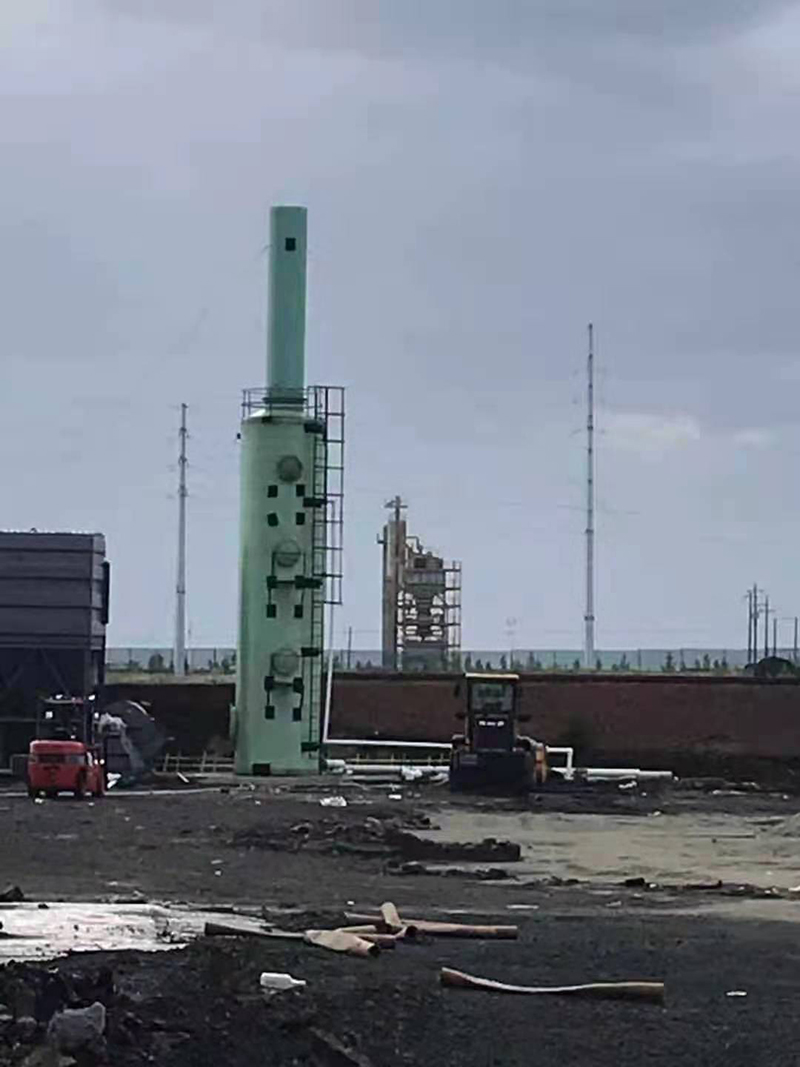 一、玻璃鋼脫硫塔設備工流程:首先,玻璃鋼脫硫塔熱煙氣進入預洗滌塔,與飽和硫酸銨溶液接觸,煙氣在此過程中被冷卻,同時,由于飽和硫酸銨溶液中水的蒸發而析出硫酸銨晶體。已被冷卻的煙氣通過除霧器進入SO2吸收塔。在吸收塔中,氨與水混合成氨液。煙氣中的SO2在此被吸收,與氨反應生成硫酸銨。后,脫硫后煙氣經120米高的煙囪排入大氣。硫酸銨溶液被送入預洗滌塔循環利用。預洗滌塔中的硫酸銨料漿進入脫水系統。先經水利旋流器脫水,然后經離心機得到硫酸銨濾餅。從旋流器和離心機回收的清液返回預洗滌器,循環利用。硫酸銨濾餅被送至造粒系統,得到高利用價值的顆粒硫酸銨肥料,在被火車或者卡車運走前,存放在能容納50,000噸硫酸銨的圓頂儲倉內.
