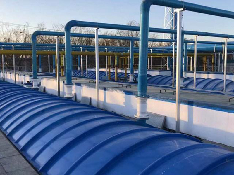 用于污水池和氧化溝的密封,防止臭氣散發(fā)。在蓋板上設(shè)排氣口,將臭氣用管道引出至除 臭設(shè)備。